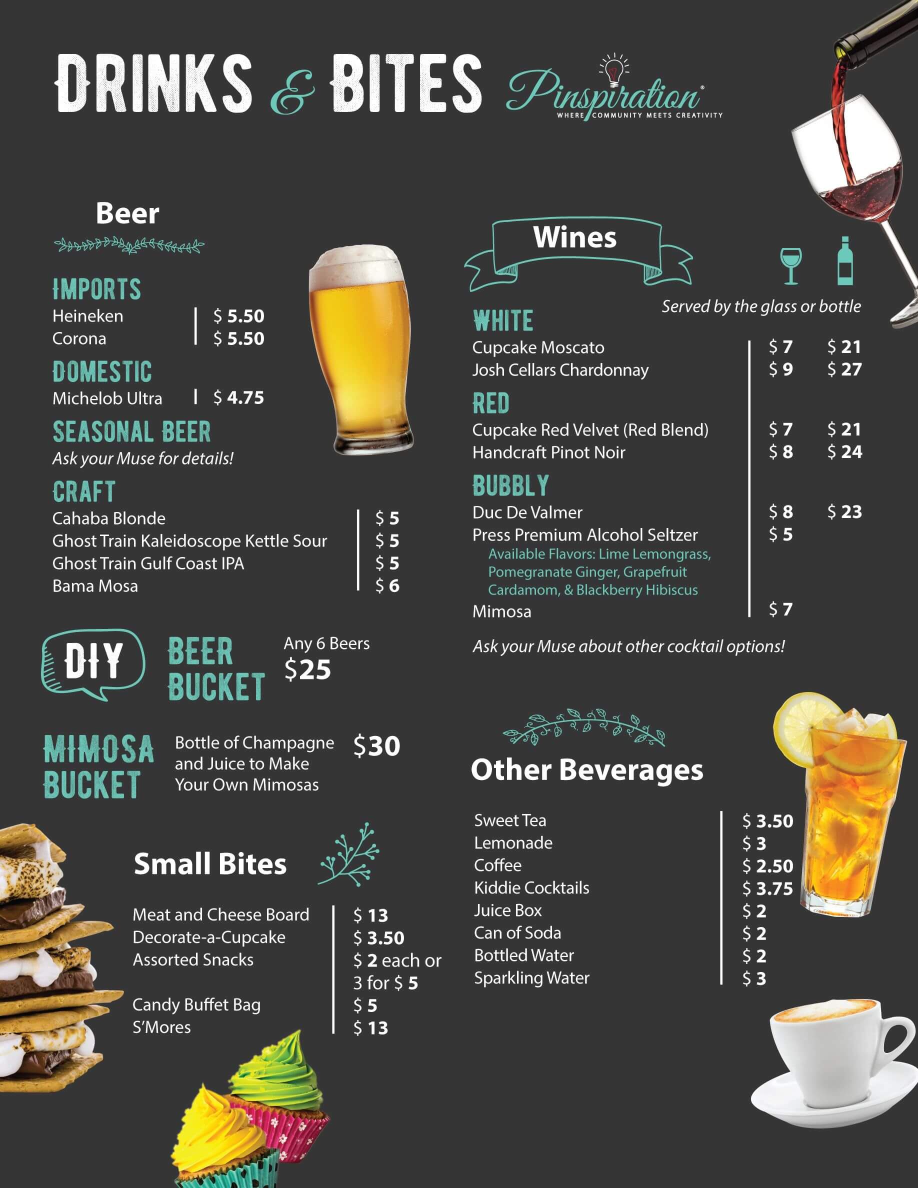 Pinspiration is a Pinterest-inspired craft studio, located in Birmingham, Alabama! Imagine a DIY crafting studio where you can make the most popular arts and crafts projects, and personalize and customize on-the-spot! We offer kids birthday and adult party packages. Our studio hosts Paint and Sip (wine and painting nights) in addition to our other crafting options. Pinspiration has become an extremely popular destination for family activities, corporate team builders and corporate events, kids birthday parties, adult birthday parties, bridal showers and bachelorette parties, Girls Nights Out, holiday parties and other events. We have a beautiful private special events party space, a hip wine and beer bar to stimulate your "creative juices" and a Jackson-Pollock-inspired splatter room! Pinspiration Birmingham is home of Alabama's 1st and original Splatter Room! TM Linger with friends over a glass of wine at our wine bar or enjoy delicious mimosas on the weekends. Relax with no hassle, no mess, and no excuses.
